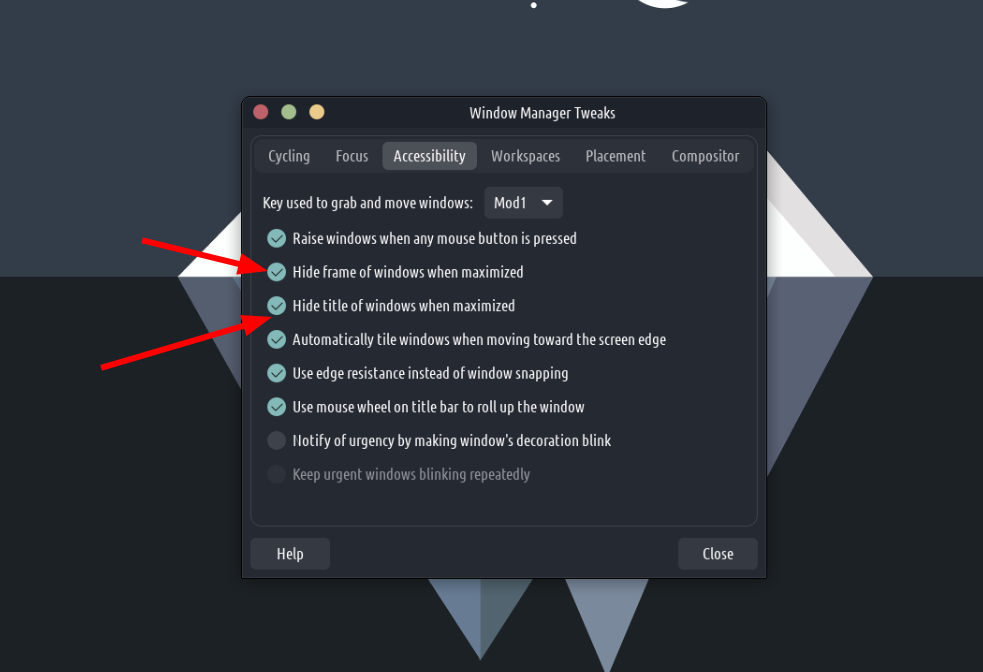 We can now use the features of these top window bars like rolling up a window or blending the window bar to the top panel.